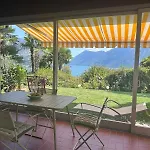 Guests can enjoy a seaside sea view from a terrace at Lake View Palm Garden Lugano villa, 13 minutes' walk from the Museo in Erba.